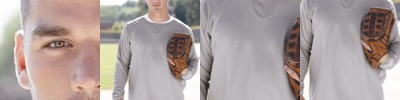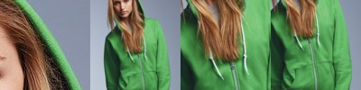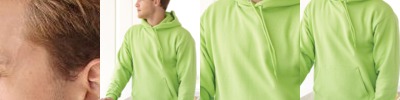 - Raw edge seams on raglan shoulders, side gusset panels, pocket and waistband